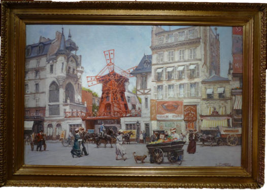 Sometimes described as "the encyclopedist of the capital of the arts", Léon Zeytline paints with almost photographic precision and a sense of detail, the great Parisian monuments, thus leaving to history the traces of the memory of the monuments of his time (Panoramic View of the Quays of the Seine, The Pavilion of the Universal Exhibition or The Eiffel Tower and the Palais de l'Electrcité, The Moulin Rouge).