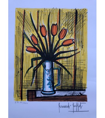Buffet Bernard Bouquet Of Orange Tulips Lithograph Colors Signed Certificate Of Authenticity