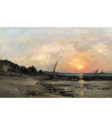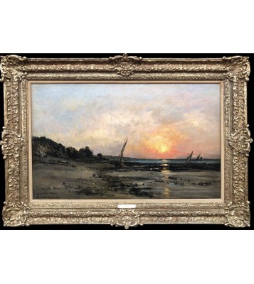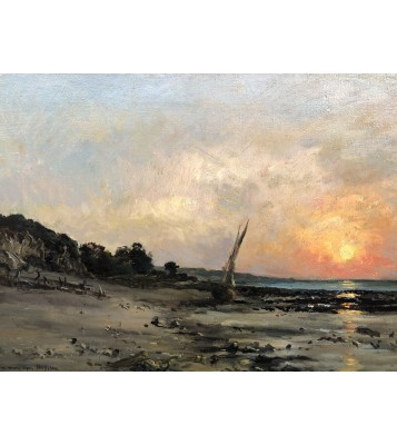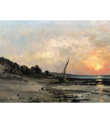 - Daubigny Karl Sunset By The Sea Oil On Canvas Signed Dated And Dedicated Certificate of authenticity