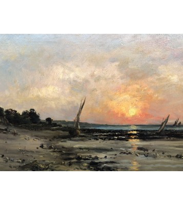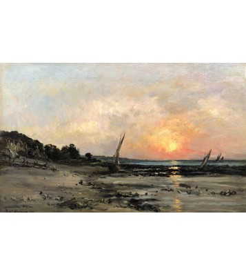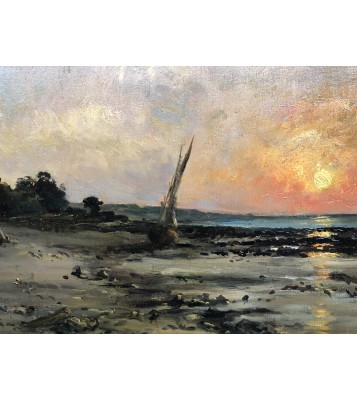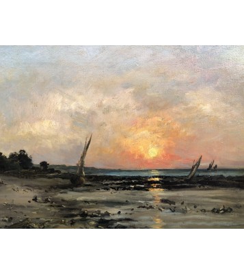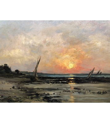 He inherited his father's love of the aquatic environment and also took up the theme of estuaries, with their lazy waters and shimmering reflections, their low houses on the shore, their tall sailing ships, and their low gray skies from which a shower escapes between two clear spells. We find a chromaticism of muted, solid colors, broken by the sun's rays, rendered in thick impasto with savory brushstrokes.