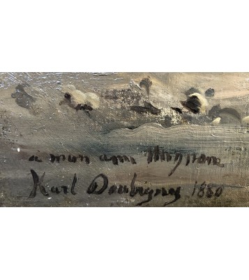 Landscape painter Karl Daubigny took drawing lessons from his father Charles François Daubigny at the Académie Suisse. His taste for painting developed at a prodigious rate, no doubt thanks to the influence of the artistic milieu in which he grew up. He regularly accompanied his father on excursions with his painter friends such as Corot, Daumier, and Steinheil.