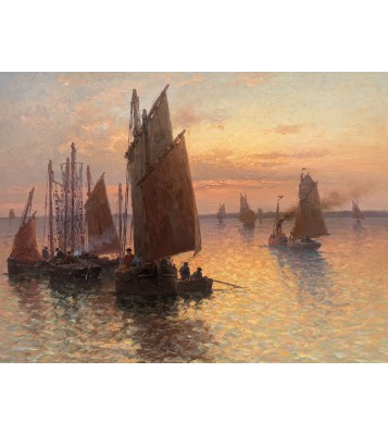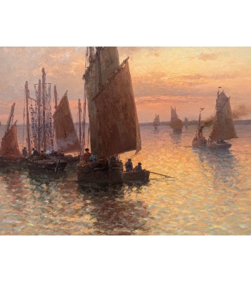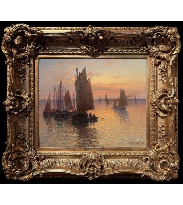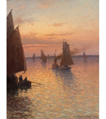 Painter of landscapes, water landscapes, seascapes, watercolorist. Louis Etienne TIMMERMANS was a student at the Academy of Brussels and the School of Fine Arts in Paris. He exhibited at the Salon des Artistes Français in Paris, receiving an honorable mention in 1904. Louis Etienne TIMMERMANS worked mainly in France, painting seascapes, views of ports, and the quays of the Seine in Paris. Louis Etienne TIMMERMANS was particularly sensitive to the atmosphere of small fishing ports, which he painted with precise realism. Louis Etienne TIMMERMANS brought back landscapes from a stay in Holland, in which he played with light and water in a lyrical manner.
