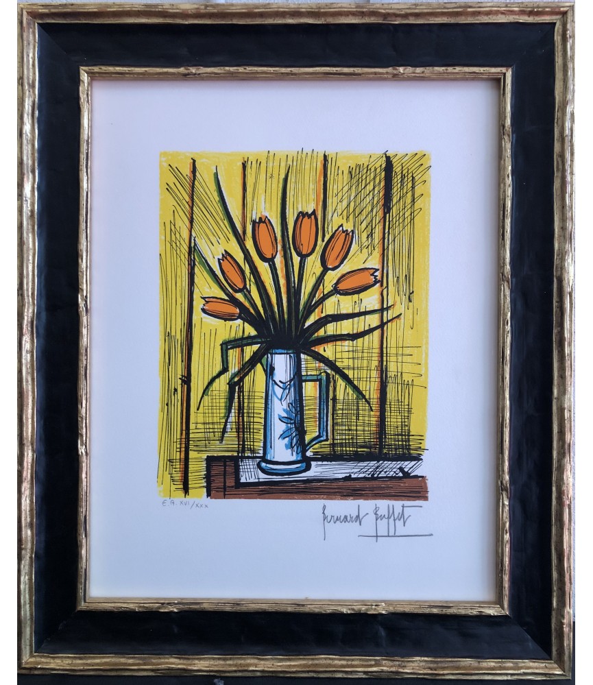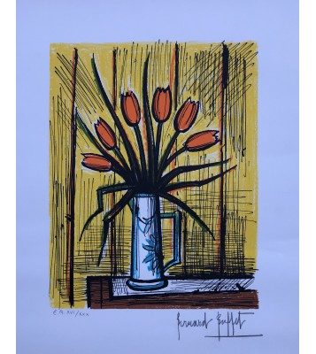 BUFFET Bernard Bouquet tulipes oranges Lithographie Couleurs Signée certificat