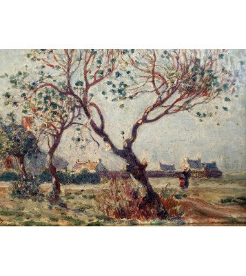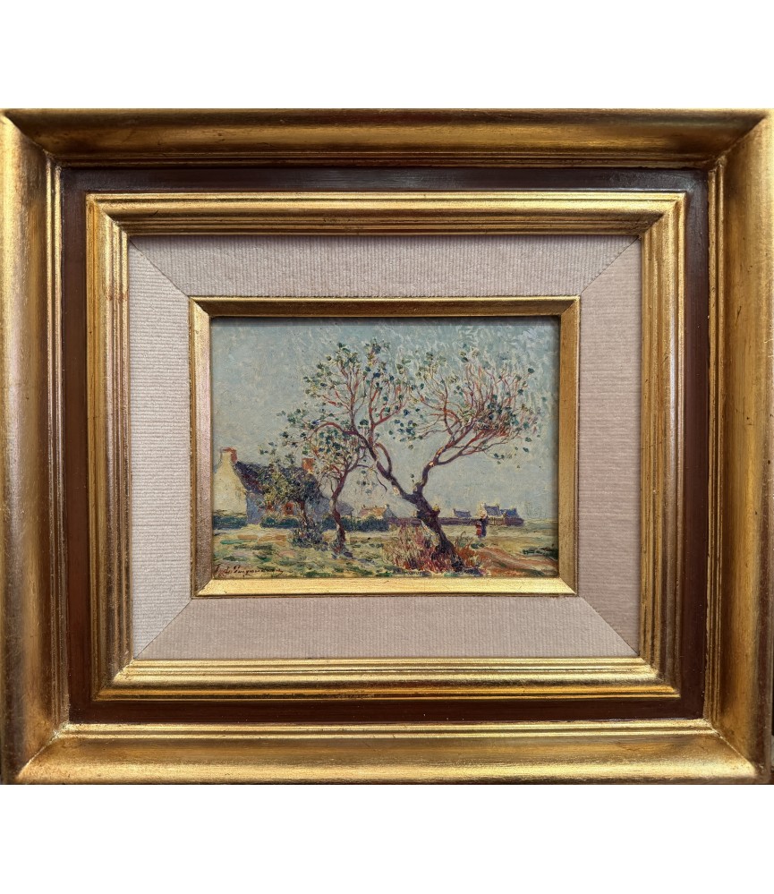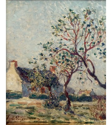 - DU PUIGAUDEAU Ferdinand Peinture de bretagne Maisons en Brière Huile signée Certificat d'authenticité