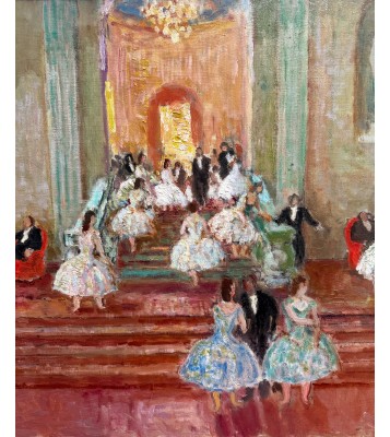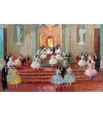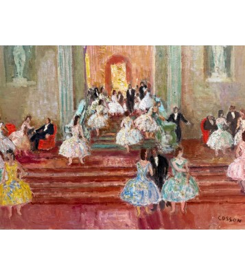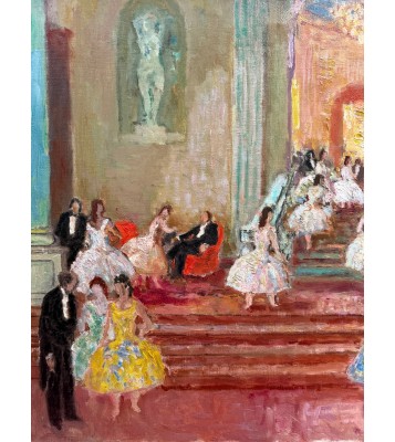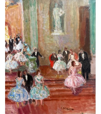 - COSSON Marcel Peinture 20è Siècle Animation au grand escalier de l'Opéra de Paris Huile Sur Toile Signée Certificat